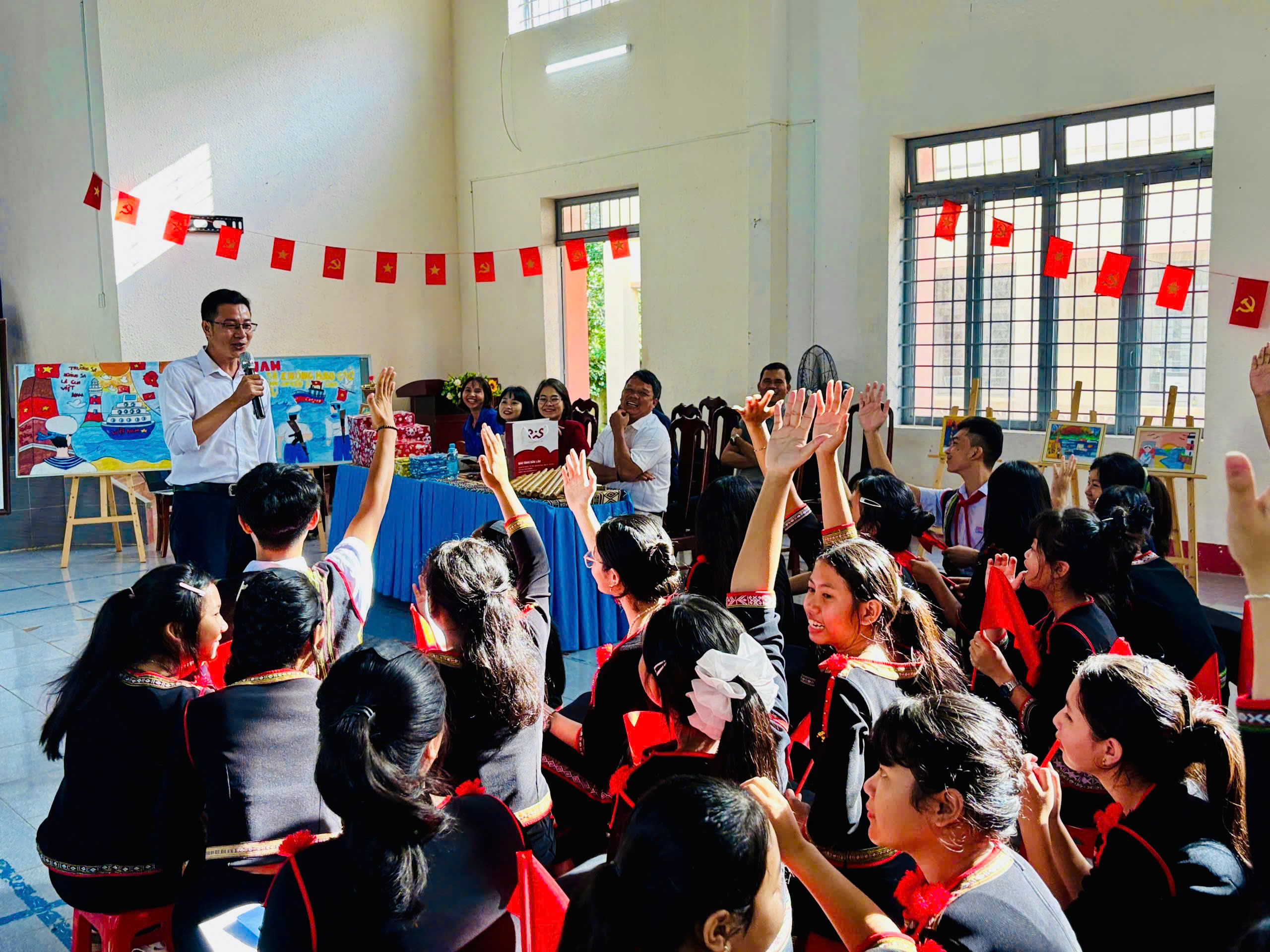 Thực hiện Kế hoạch số 013/KH-BT ngày 25/9/2025 về Tổ chức chương trình tuyên truyền, giáo dục di sản văn hóa dành cho học sinh quý IV năm 2025, Bảo tàng Đắk Lắk phối hợp với Trường phổ thông dân tộc nội trú Trung học cơ sở Cư Kuin tổ chức chương trình giáo dục trải nghiệm “Em yêu biển đảo quê hương”.