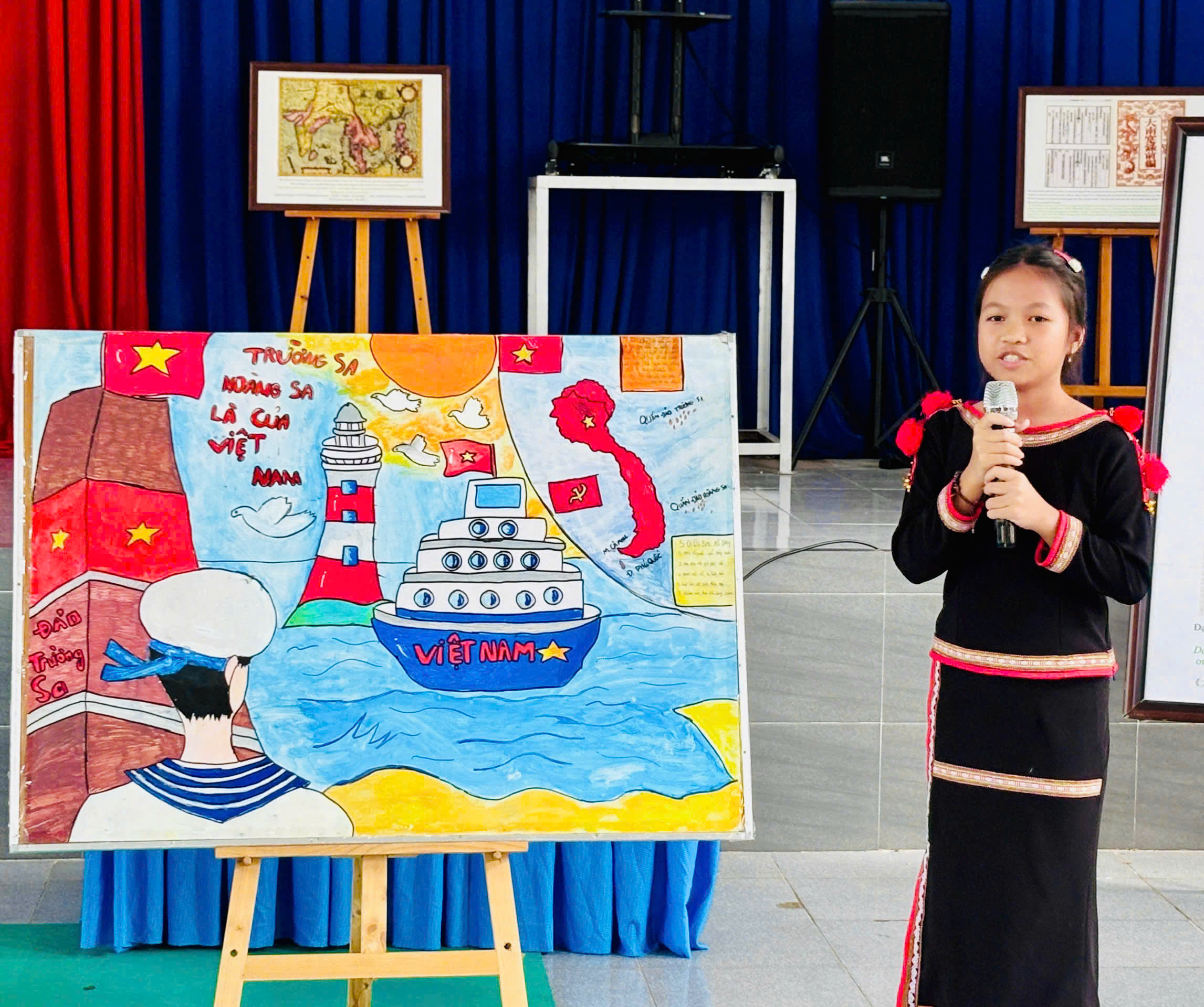 Trưng bày tranh và học sinh thuyết trình về biển đảo