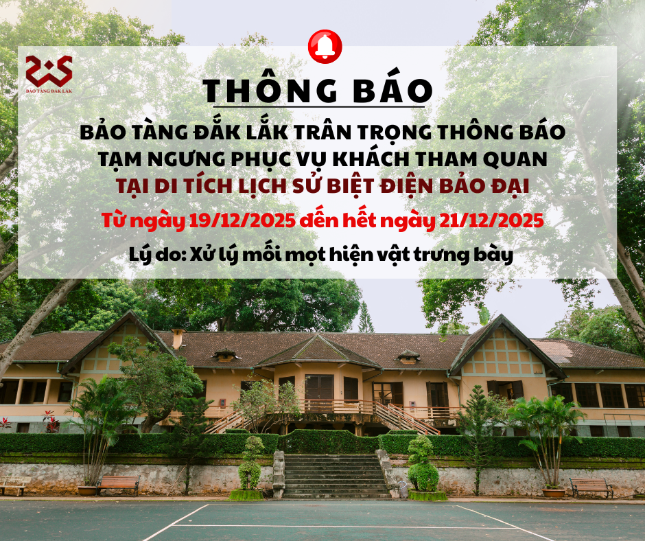 THÔNG BÁO TẠM NGƯNG PHỤC VỤ KHÁCH THAM QUAN TẠI DI TÍCH LỊCH SỬ BIỆT ĐIỆN BẢO ĐẠI